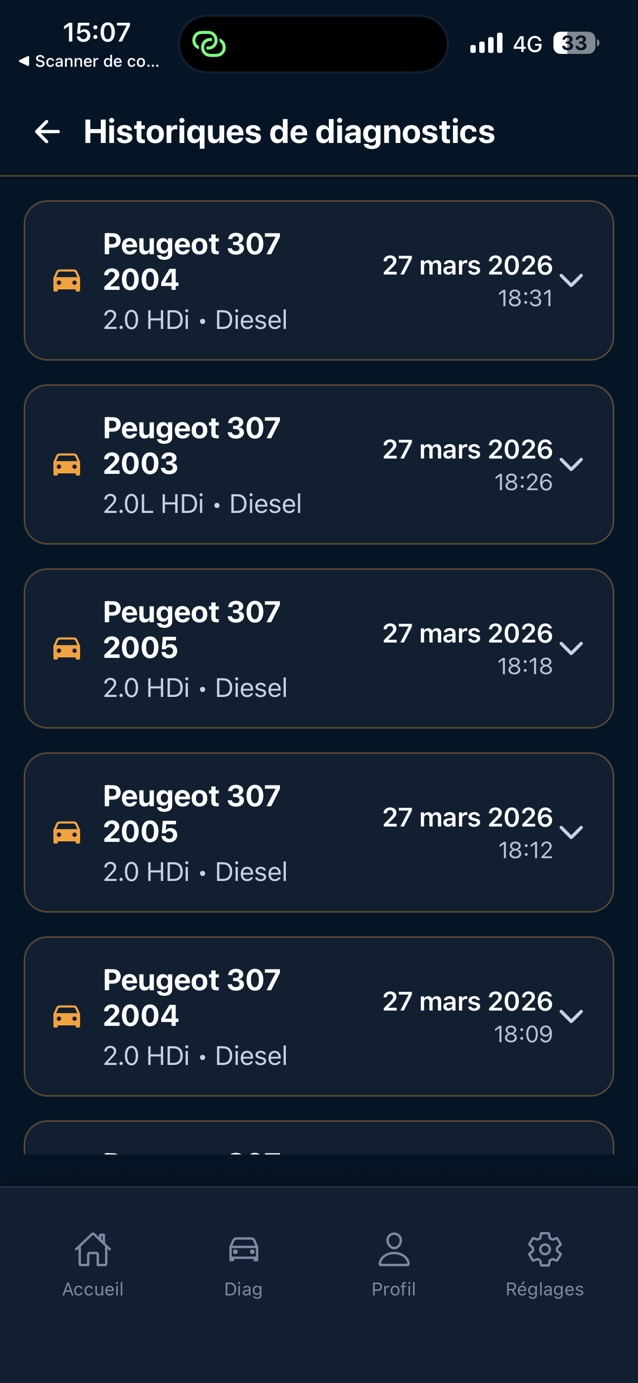 Reprenez vos diagnostics, comparez les sessions et gardez une trace utile avant une visite en atelier.