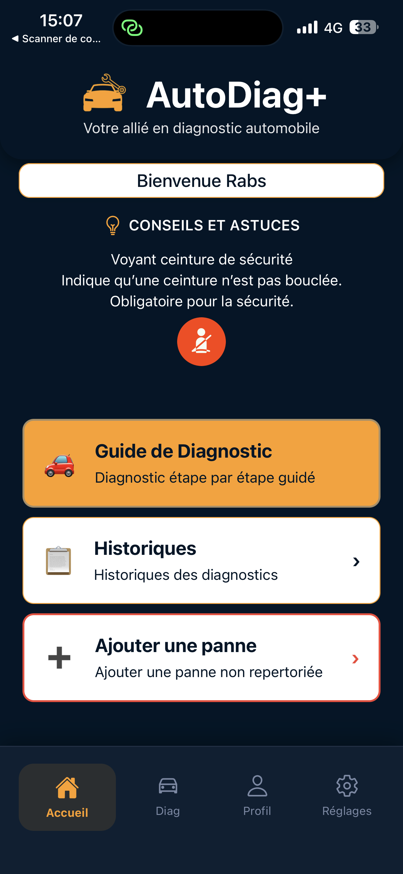 L’application AutoDiag+ propose un service d’assistance au diagnostic automobile basé sur les informations fournies par l’utilisateur.
