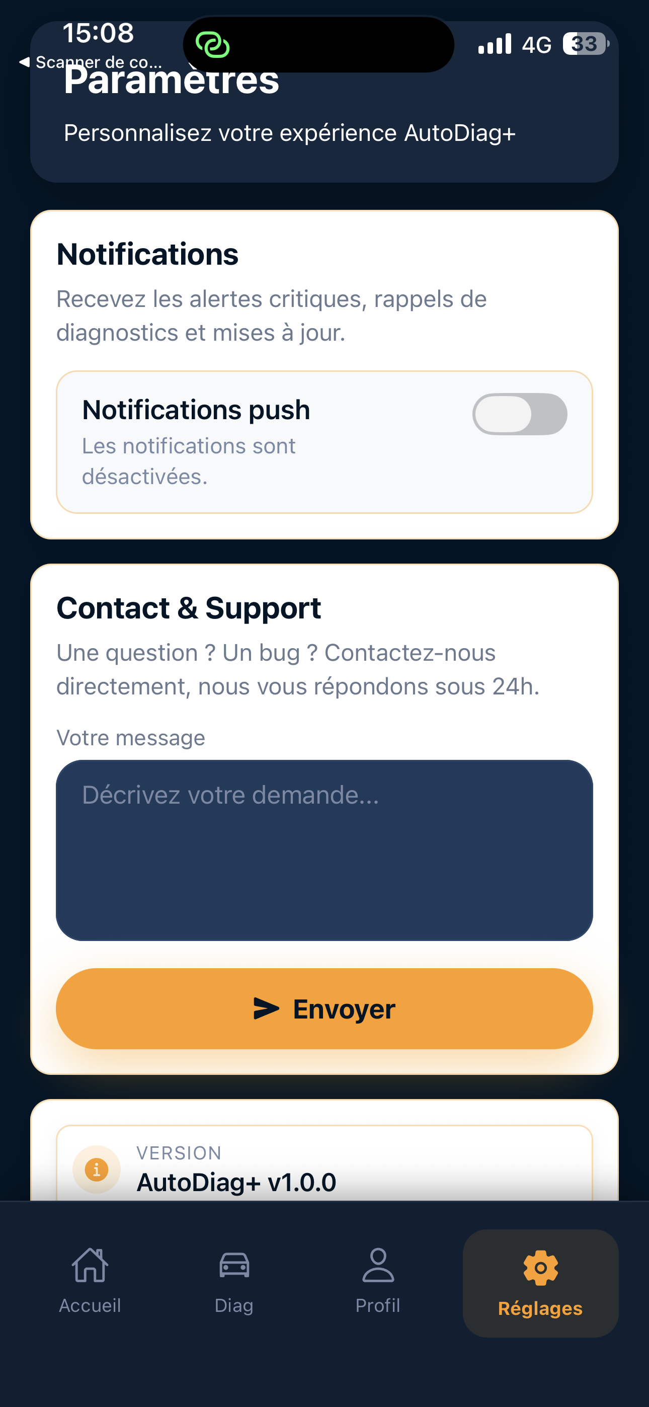 Ajoutez une panne non répertoriée dans l’application pour aider la communauté AutoDiag+ et les futurs utilisateurs.